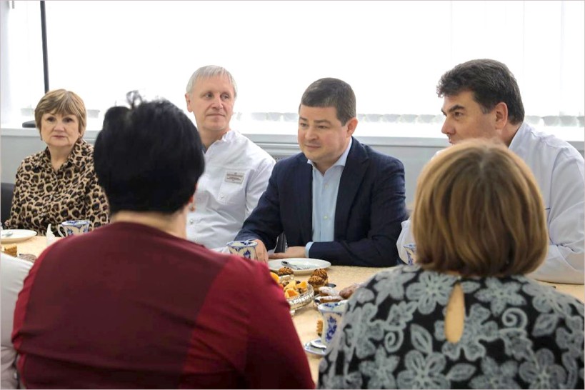 Вместе с главврачом Сергеем Маркитаном глава Раменского округа провел встречу с работниками Раменской больницы, чьи близкие сейчас находятся на передовой или героически отдали жизнь за Отечество.